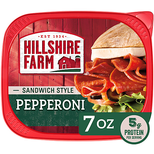 Easily enjoy fully cooked, ready-to-eat pepperoni with our Hillshire Farm Sandwich Style Pepperoni. Seasoned with spices, our carefully crafted pepperoni is made from our highest quality ingredients and has no artificial flavors or colors. With a large diameter, each thick pepperoni slice is ready to deliver the delicious flavor that you know and love. With 5g of protein per serving, our versatile sliced pepperoni is perfect for more than just convenient sandwiches and paninis. An Italian classic, enjoy our sliced pepperoni on a homemade pizza or flatbread, or as a savory snack you can eat alone or on your next charcuterie board. Our fully cooked pepperoni comes packaged in a double-sealed and recyclable tub for absolute freshness. Whether you’re stacking a pepperoni sandwich or making a delicious snack, enjoy Hillshire Farm thick and flavorful pepperoni.