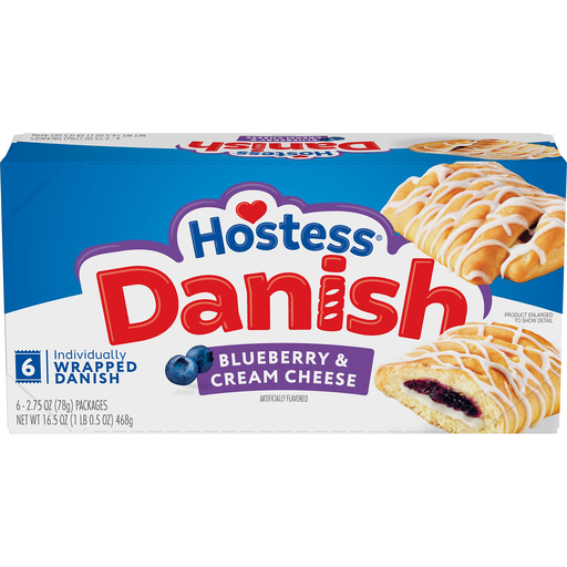 Add some especially tasty members to your brunch bunch with Hostess Danish pastries. They’re soft and flaky on the outside, and packed with smooth, blueberry and cream cheese artificially flavored fillings on the inside — plus, they’re topped off with a drizzle of icing. Literally the perfect breakfast snack. But we both know a Danish pastry this good could be your snacking soulmate any time of day. Each one is individually wrapped, which makes ’em easy to pack in a purse, lunchbox or travel bag for a berry necessary pick-me-up, wherever and whenever. Keep a box of our Danish pastries on hand to make your morning — and snack time — sweet.