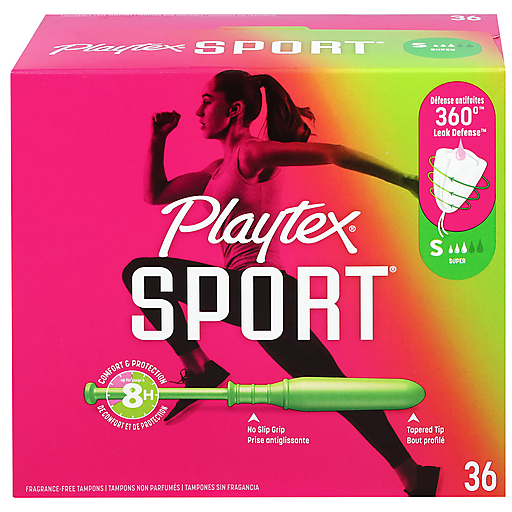 Move without compromise with the #1 Athletic Tampon.* Playtex Sport Tampons are made for movement, featuring 360°™ LEAK DEFENSE™ with FLEXFIT™ technology that stops leaks before they happen. With up to 8 hours of comfort and protection, Playtex Sport Tampons are designed to fit your body and its every move all day long. Our unique tampon applicator has a tapered tip making insertion comfortable and easy, and a NO-SLIP GRIP™ that allows for precise placement. Whether you’re running, jumping, swimming, or stretching, these tampons provide long-lasting comfort and all-around protection for your active lifestyle. Every menstrual cycle is unique, and your daily flow can fluctuate, so we’ve got you covered with a range of 5 absorbencies from Light to Ultra, available in single absorbency packs or tampon multipacks including two or three absorbencies together in one box. These Super tampons for women are fragrance-free. Packaging may vary. *Source: Circana Unify+, Custom Model – Tampon Segment, Total US MULO+ with Convenience; L52 WE 2.9.25